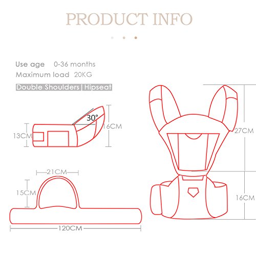 - 適用年齢と体重:赤ちゃんの0-36ヶ月、最大負荷:20KG、調節可能なウエストサイズは最大47.2インチ(約120cm)になります。