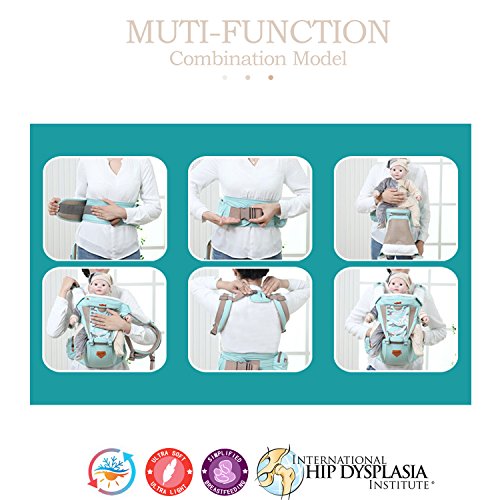 SONARIN 雲 Hipseatベビーキャリア、多機能、すべてのサイズにフィット、赤ちゃんのための居心地の良い&うるおい、持ち運びが簡単で簡単なママ、あなたの子供の成長に適応、100%保証と無料配達、理想的なギフト(緑)