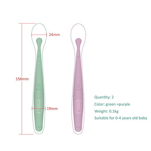 SONARIN赤ちゃん用シリコンスプーン赤ちゃん用離乳スプーン100%食品グレード素材快適で簡単にクリーン、曲げ可能、BPAフリー、独立した赤ちゃんと幼児の授乳を奨励し、理想的なギフト、2色セット、グリーン/パープル(1パック)