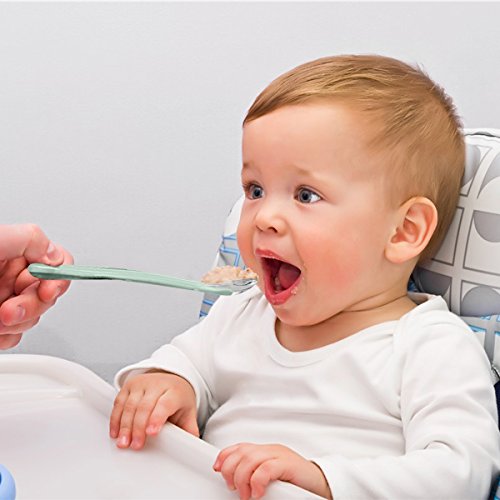 - 中程度のスプーン:各一口に適切な量の食べ物を与え、過給や窒息を防ぐ。 0〜4歳の赤ちゃんのために設計されています。