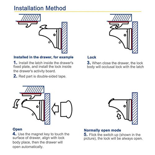 - 穿孔や工具を使用する必要はありません。これらの磁気ベビーセーフティロックは、引き出しや食器棚を損傷から安全に保ちますので、赤ちゃんが年を重ねると元の状態に保つことができます。