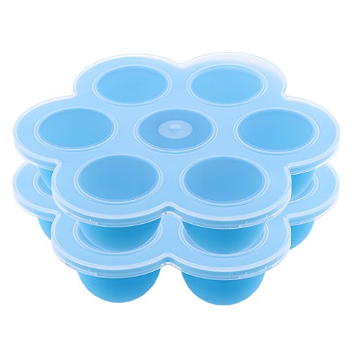 SONONIA 2個入り プラスチック/シリコーン ベビーフード ストレージ コンテナ 7穴 冷凍庫 トレイ 全2色 - 青