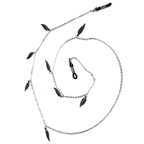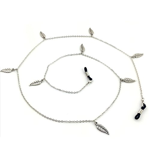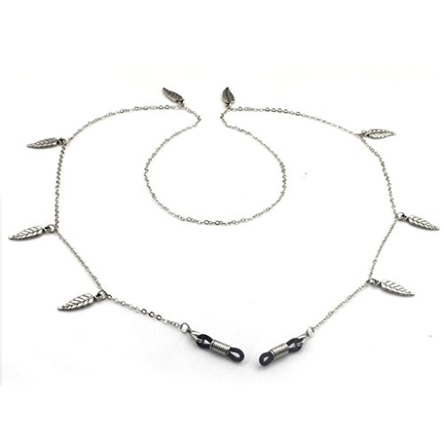 - 調整可能なゴム製の金属コイルエンド、リーフチャーム付きシルバーメタルのメガネチェーン