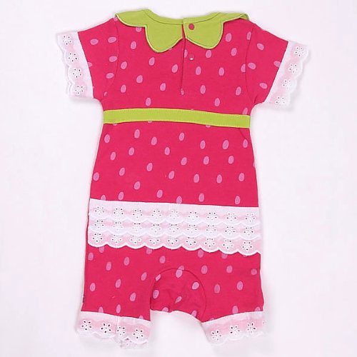 SOZO(ソゾ)【イチゴロンパース】女の子ピンクストロベリーアップリケ&レースフリル半袖ロンパース 3-6months 3ヶ月-6ヶ月用 60cm-70cm 出産いギフトプレゼント,,ショートオール【並行輸入】