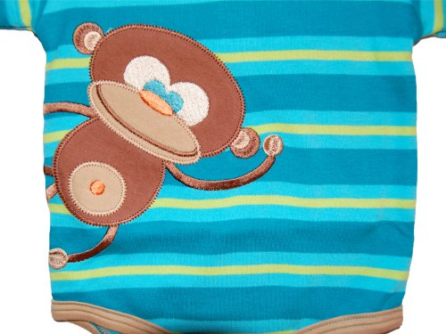 SOZO(ソゾ)水色ボーダーCheeky Monkeyプレミアムコットン長袖ボディースーツ(おさる・ボーダー) 0-3months 0-3ヶ月用 50cm-60cm 出産祝い,ロンパース,肌着【並行輸入】