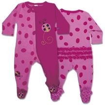 SOZO(ソゾ)【テントウムシカバーオール】女の子用ピンク水玉&パープルてんとう虫刺繍足つきカバーオール 6-9months 6ヶ月-9ヶ月用 70cm-80cm てんとうむしロンパース,出産祝いギフトプレゼント,【並行輸入】