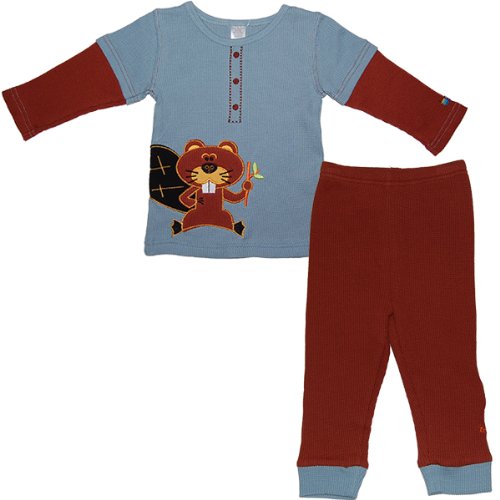 SOZO(ソゾ)男の子用ブルーグレーxブラウンビーバーアップリケサーマル生地プレミアムコットンパジャマ長袖上下2点セット 4T 4歳用 110cm 水色スリープウェア,出産いギフトプレゼント,,お寝んね [並行輸入品]