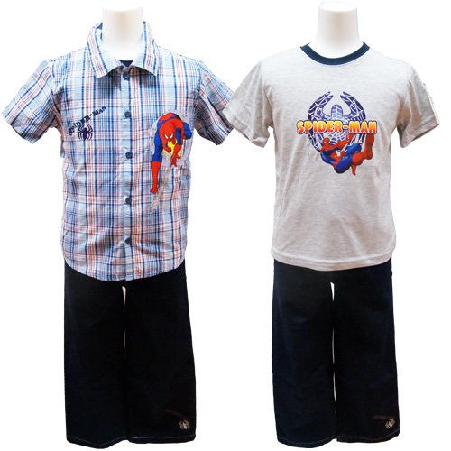 SPIDERMAN(スパイダーマン)半袖シャツ・Tシャツ&デニム3点セット(ブルー×グレー)
