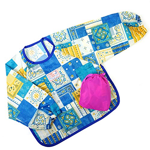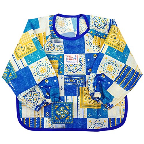stample スタンプル ベビーペイズリー柄お食事エプロン 長袖 撥水加工 はっ水 ランチスタイ お食事スタイ 赤ちゃん 子供服 ベビー服 離乳食|55.ブルー