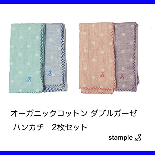 STAMPLE(スタンプル) オーガニックコットン ダブルガーゼ ハンカチ 2枚組 沐浴 ONE,26:ピンク/パープル