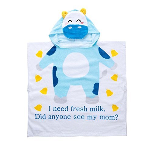 CUTE Baby Hooded Towel,STAR-TOP 100% Organic Cotton,Soft,Children's Cartoon Bathrobe for Baby Gifts (Cow) by STAR-TOP