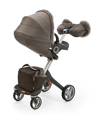 Sheepskin rimmed hood and hand muff for extra warmth., Insulated hood and storm cover protect baby from all weather., Designed to fit perfectly with the Stokke Xplory V3 seat and carry cot., Hand wash individual parts separately at moderate to warm temperatures., Shopping bag and diaper bag- wipe with clean damp cloth.