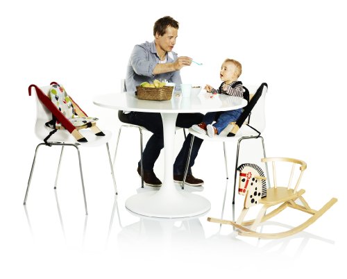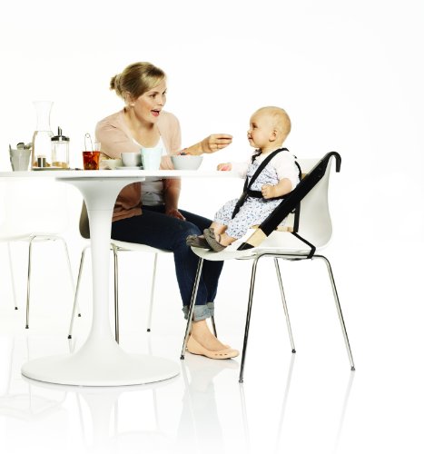 STOKKE ハンディシットは、ほとんどのダイニングチェアに取付けが可能です。アームフックを引っ掛けてセーフティストラップを留めるだけでカンタンに取付け。普段大人が使用しているチェアがベビー専用チェアに早変わりです。