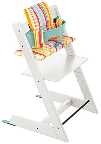 ストッケ トリップトラップ チェアセット チェア:ホワイト ベビーセット:アクアブルー クッション:アートストライプ 撥水加工なし 【3個口】