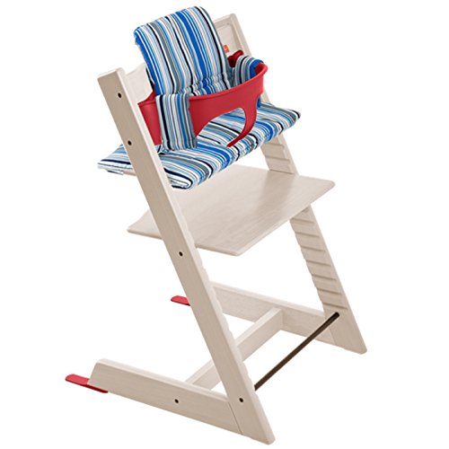 ストッケ トリップトラップ チェアセット チェア:ホワイトウォッシュ ベビーセット:レッド クッション:オーシャンストライプ 【3個口】