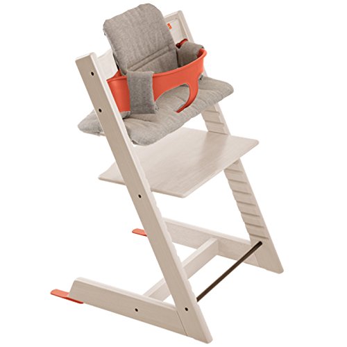 ストッケ トリップトラップ チェアセット チェア:ホワイトウォッシュ ベビーセット:ラバオレンジ クッション:ヘイジーツイード 【3個口】