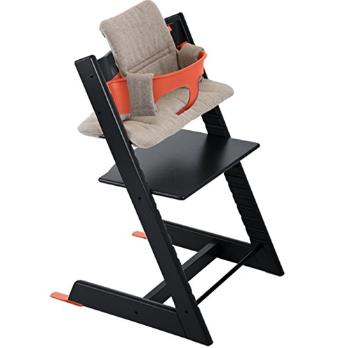 ストッケ トリップトラップ チェアセット チェア:ブラック ベビーセット:ラバオレンジ クッション:ヘイジーツイード 【3個口】