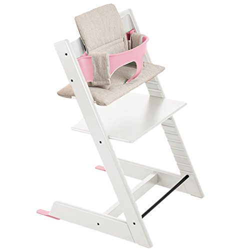 ストッケ トリップトラップ チェアセット チェア:ホワイト ベビーセット:ソフトピンク クッション:グレイルーム 【3個口】