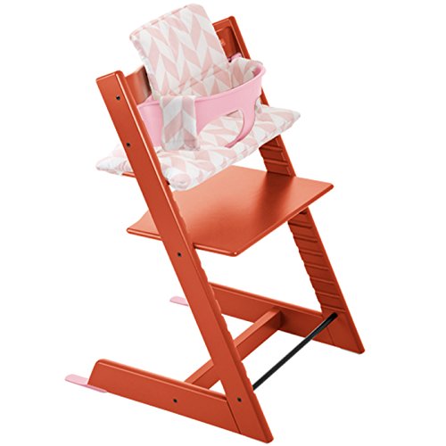 - トリップトラップチェアの組み合わせ商品 チェア:ラバオレンジ、ベビーセット:ソフトピンク、クッション:ピンクシェブロン