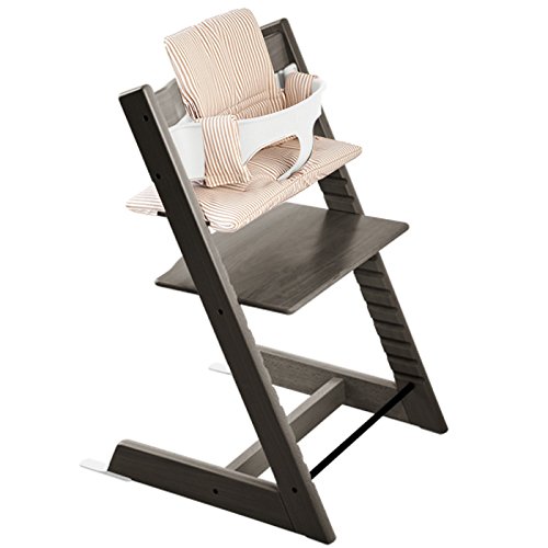 ストッケ トリップトラップ チェアセット チェア:ヘイジーグレー ベビーセット:ホワイト クッション:ベージュストライプ 【3個口】