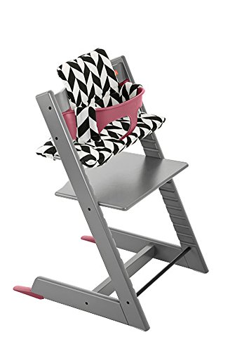 - トリップトラップチェアの組み合わせ商品 チェア:ストームグレー、ベビーセット:ヘザーピンク、クッション:ブラックシェブロン