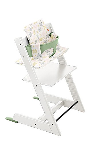 ストッケ トリップトラップ チェアセット チェア:ホワイト ベビーセット:モスグリーン クッション:スウィートバタフライ 【3個口】