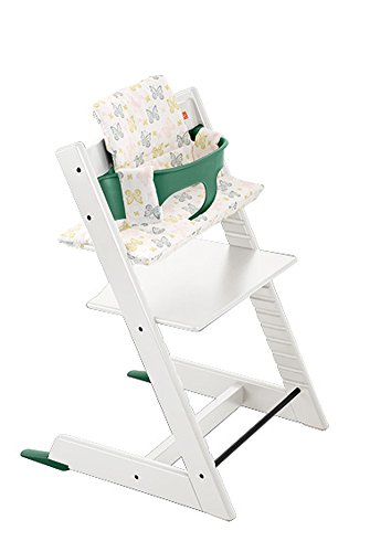 ストッケ トリップトラップ チェアセット チェア:ホワイト ベビーセット:フォレストグリーン クッション:スウィートバタフライ 【3個口】