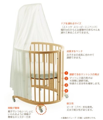 スカジンナビアデザインの特徴であるシンプルで機能的なデザインのスリーピーは、優しい木の温もりが心地良く、鋭い角を持たない楕円形が特徴のベビーベッドで、お子さまが夢いっぱいの豊かな時を安心して過ごせる場所です。栽培されたビーチ(ブナ)材を使用し、環境に配慮し、丈夫で安心の素材で作られています。特徴的な楕円の形はベッド内の空気の流れを整え、お子さまにとって居心地のよい環境をつくります。ストッケスリーピーは様々なカラーバリエーションをご用意しています。