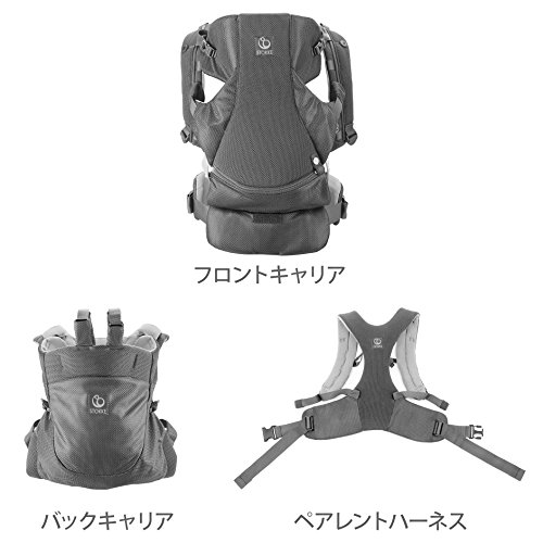 - 含まれるもの:ペアレントハーネス、フロントキャリア、バックキャリア/対象年齢:新生児(体重3.5kg、身長53cm以上)~3歳頃。