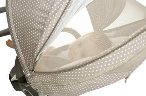 新生児から使えるストッケ エクスプローリー キャリーコット(別売)にも取り付けることができます。その際にはシートバックカバーは使用しませんので、大切に保管してください。またストッケ エクスプローリークルージ シートでもご使用いただけます。
