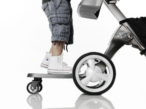 ストッケ エクスプローリー ライダーは、ストッケ エクスプローリー本体に取り付けて、お子様を立って乗せ、一緒に押すことができるボード。ひとりで歩けるようになってストッケエクスプローリーを卒業した子どもたちにとって、クールで思わずワクワクしてしまうような、ライダーです。