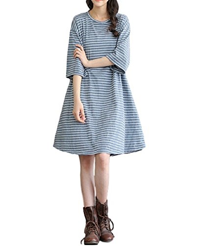 - ゆったり着れる シンプルなボーダーワンピース