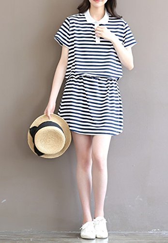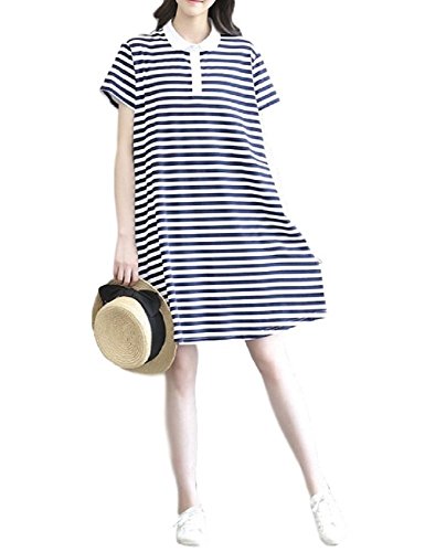 - 半袖 ボーダー ワンピース 襟付き 夏のマストアイテム