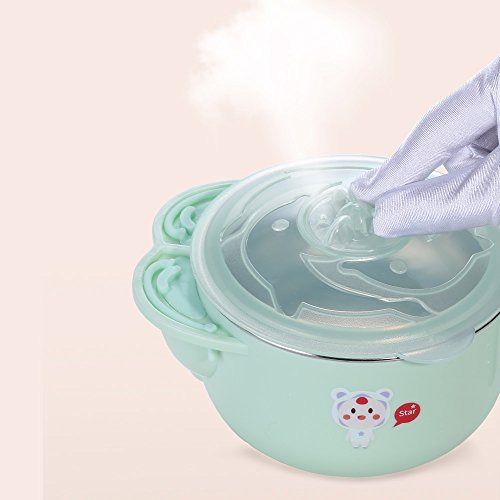 アイテム説明: ブランド:SUNVENO カラー:グリーン、ピンク 材質:ステンレススチール/シリコン/ PP全BPAフリー サイズ: 大きなボウル:18 * 10cm スモールボウル:12 * 5.5cm カップ:10 * 9.3cm フォーク:14.7cm スプーン:15cm パッケージは以下を含みます: 1本大皿 1個小鉢 1カップ 1個のフォーク 1個スプーン ご注意:これは魔法瓶ではありませんので、長期間あなたの食べ物を熱く保つことはありません。 しかし、それは暖かく滞在する時間を増加させることができます特記事項