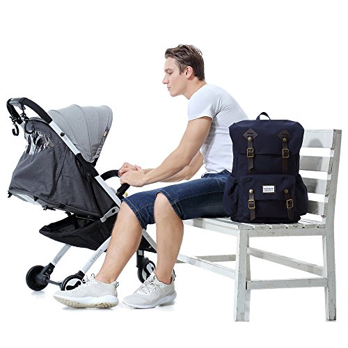 SUNVENO おむつ袋大型おむつの背中を変えるお父さんミイラ旅行のバックパック (Navy)