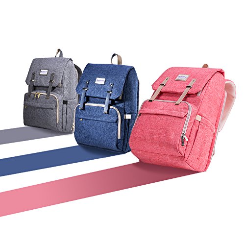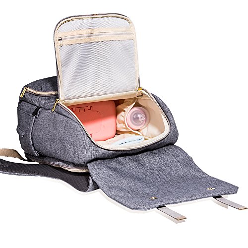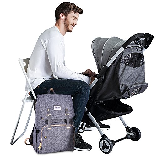 25L Large Diaper Bag - Unisex Colors - Adjustable Shoulder straps - 2 Stroller Connect D rings - 16 Pockets - Changing Pad