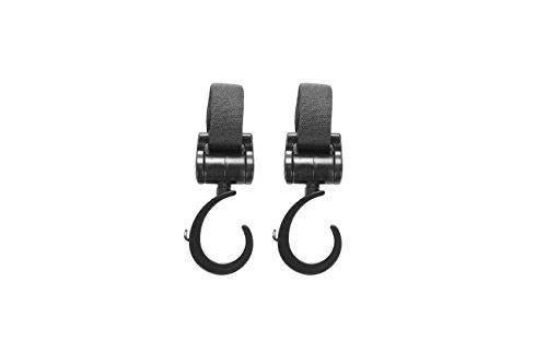 ベビーカーフック 自転車のハンドルやスーツケースにも使える マルチフック 360度可動 2個セット マジックテープ式 (ブラック)