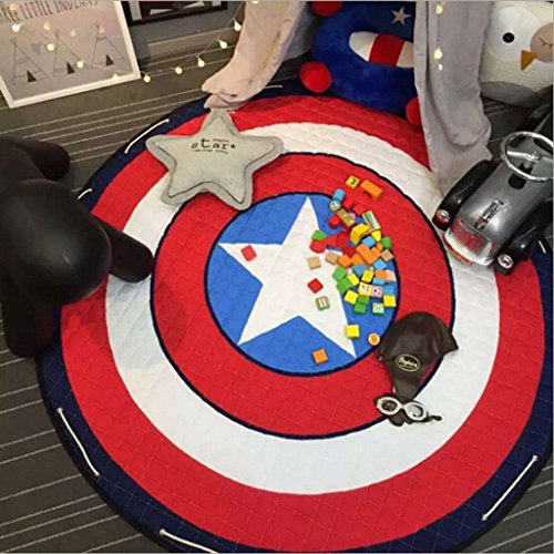 SUSUQI 可愛い子供用プレイマット 遊びマット ベビーマット 円形マット 床保護マット 滑り止め 洗える 寝具 撮影道具 防音 低反発 折り畳み可能 size 直径150cm (キャプテンアメリカ)