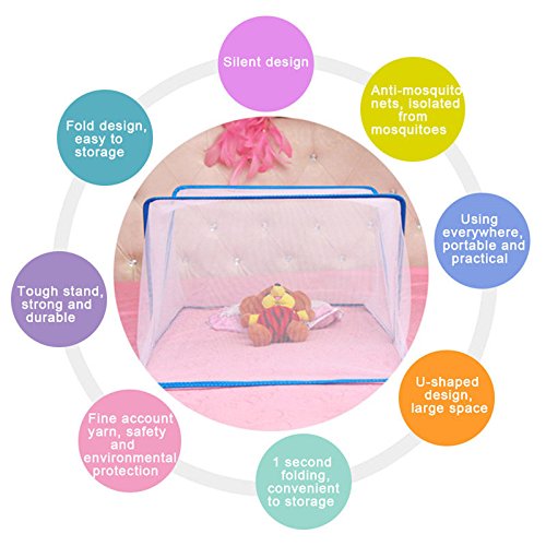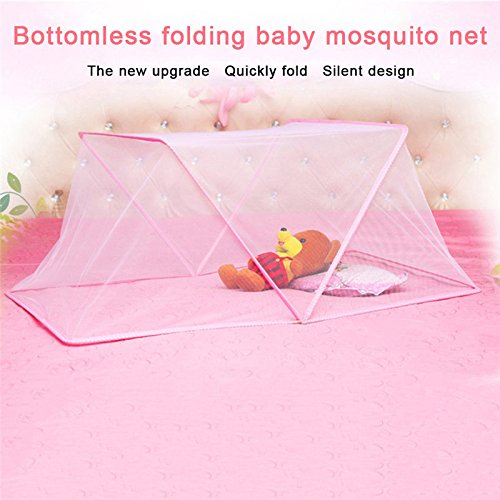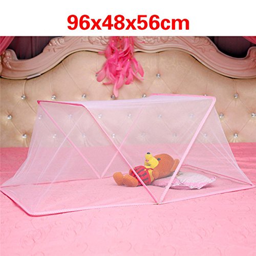 SUSUQI ベビー 赤ちゃん用折りたたみ式蚊帳 ムカデや蚊 ワンタッチ式蚊帳 ムカデ対策 簡単設置 簡単収納 ベビー用蚊帳ベッド 虫よけネット 夏必需品 底付き size 96*48*56cm (Pink)