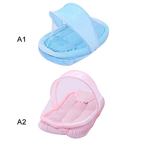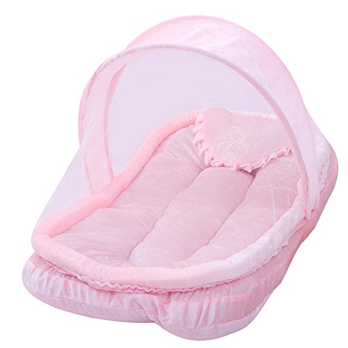 SUSUQI ベビー用蚊帳ベッド ベビー蚊帳折りたたみ式蚊帳 ワンタッチ キッズ ベビー ムカデや蚊対策 コンパクト収納便利 枕付き 通気性抜群 size 80*50*50cm (ピンク)