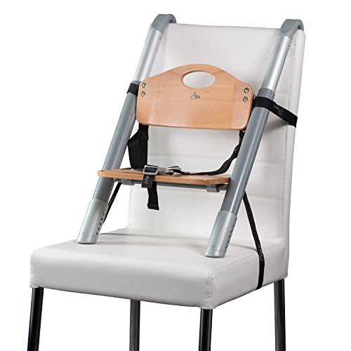Great alternative to traditional high chairs and ugly booster seats!;Safe - Fastening straps, anti-slip feet, safety locks and a 3-point harness;Adjustable - Telescopic rods to fit almost any chair. Adjustable legs for an ergonomic support of the child.;Light and Portable - 5lb and foldable for easy storage and portability. Carrying case included.;Stylish - Clean and modern design makes it a perfect fit for any home.