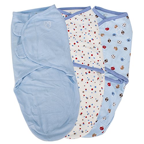 [ スワドルミー ] Swaddle Me おくるみ S/Mサイズ 3枚セット Sports Blue 73960B/55220 コットン アフガン サマーインファント Summer Infant [並行輸入品]