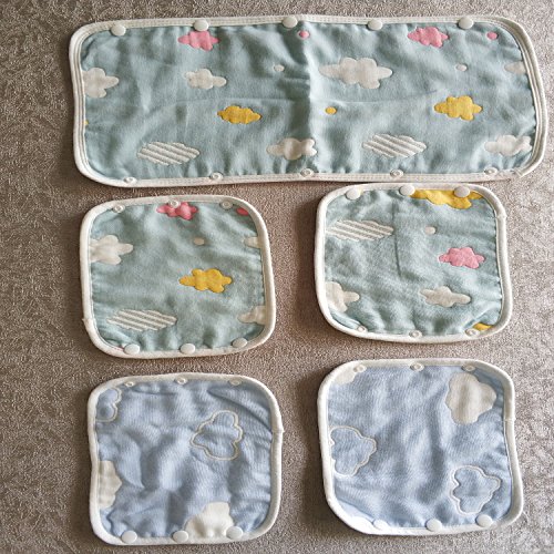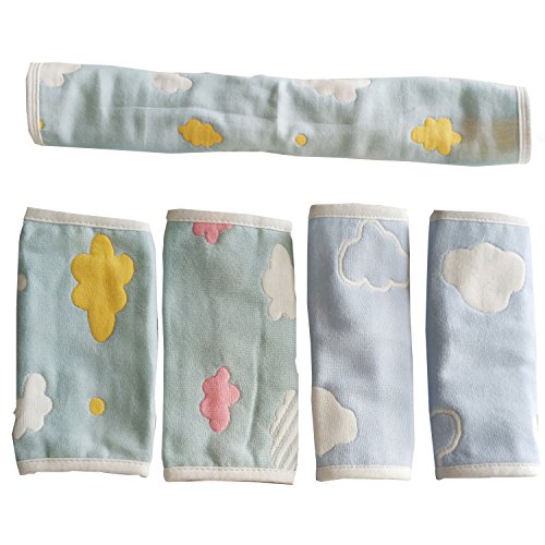 よだれカバー 抱っこひも用 ベビーカーよだれカバー ベルトパッド 100% 綿 6重ガーゼー 抱っこ紐に装着可能 ベビー 赤ちゃん 5点セット