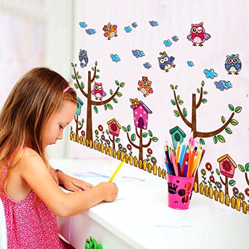 SWORNA NatureシリーズOwls家家族取り外し可能なビニールDIY壁アート壁画ステッカーデカール装飾キッズ赤ちゃん女の子男の子寝室用学習Playroom幼稚園保育園Skirting Line 15 " H x 20 " W