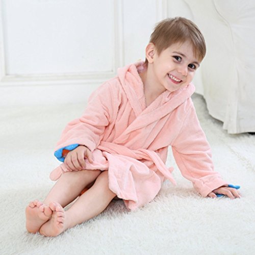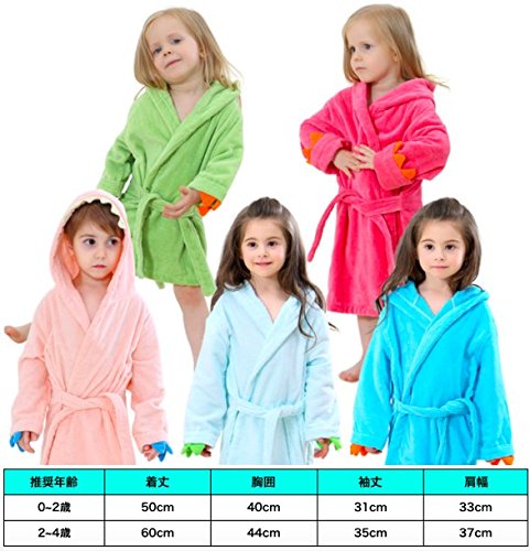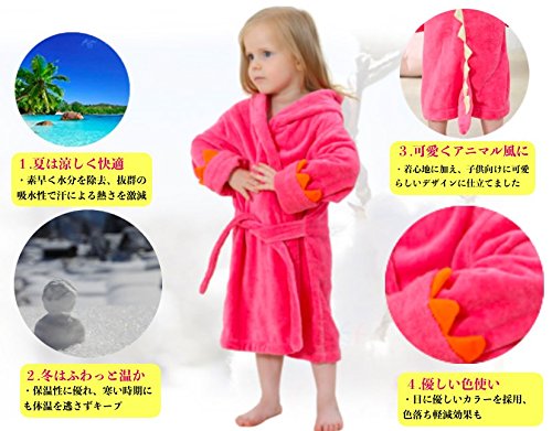 SYNC お手入れ方法 付き!! ベビー バスローブ 赤ちゃん キッズ バスタオル コットン フード付き 部屋着 ( オーロラピンク , 0〜2歳 )