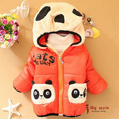 DDLキッズ コート 厚手 男の子 女の子 共用 パンダ柄 80-105CM子用柔らかいスエード調 ビロードコットンコート (120, 赤)