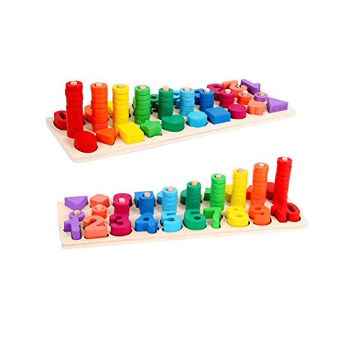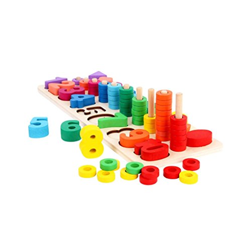 sacow Building Blocksおもちゃ、木製タワースタッキングカラフル建物ブロックジグソーパズルゲーム幼児学習ギフト