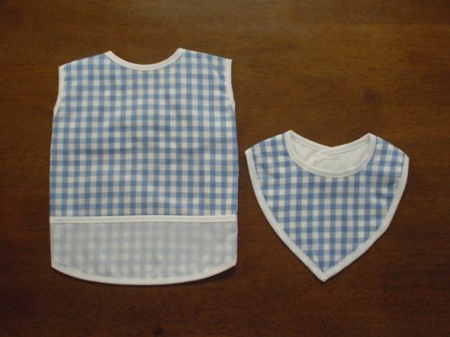 - お食事用リバーシブルエプロン撥水加工ナイロン素材でワンタッチタイプとかわいいチェックのスタイがセットです。