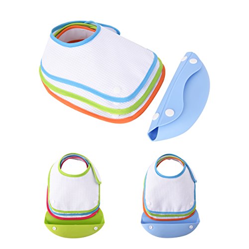 Safe&Care ベビービブ 食事用スタイ 3枚セット ポケット付き ベビー 赤ちゃん 100%綿 360°回転可 お食事用防水ビブ よだれかけ 洗濯機で洗える ブルー