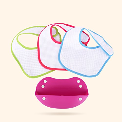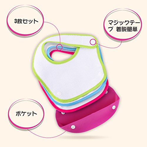 - 【洗濯OK】洗濯機で洗えてすぐ乾きます。下の部分はシリコン製なのでサッと洗い流せば簡単です。ビブはオーガニックコットンの3枚セットで洗い替え用も便利です。